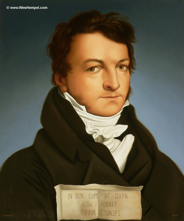 Wes Hempel, 2011; IN OUR CUPS... (from series TACIT TURNS); oil on canvas, 24" x 20"