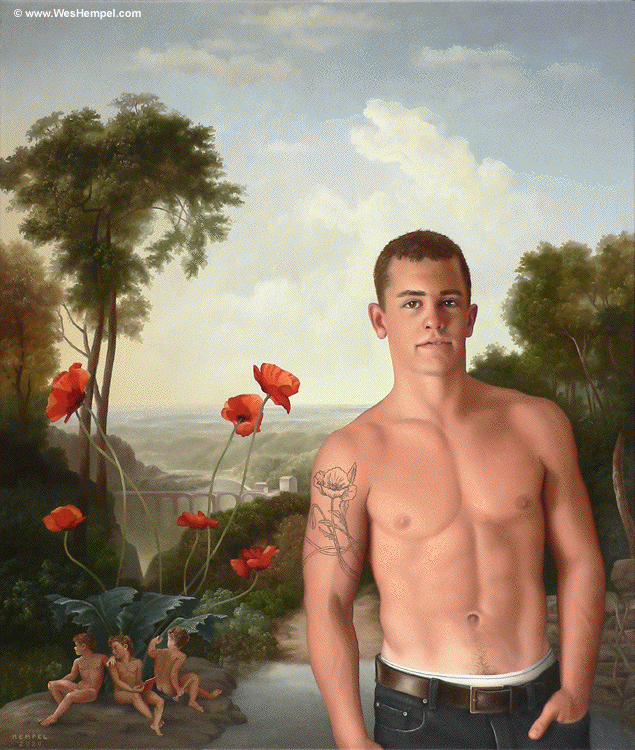 Wes Hempel, 2020; A PORTABLE EDEN; oil on canvas, 28" x 22"