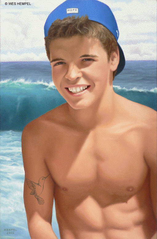 Wes Hempel, 2022; BOY IN BLUE HAT, oil on canvas, 24" x 16"