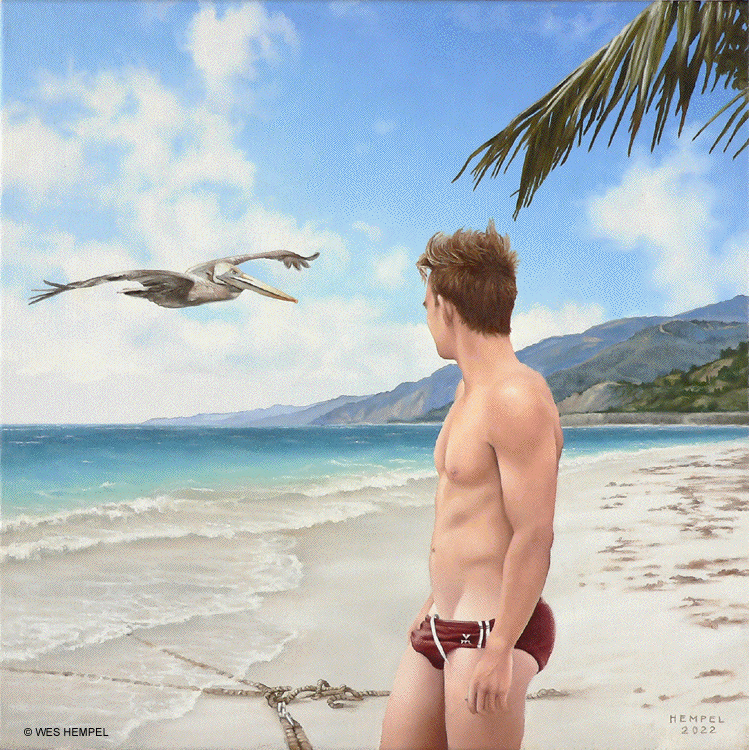 Wes Hempel, 2022: SANTA MONICA BEACH, 11 A.M., 16" x 16"