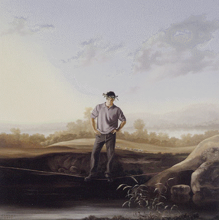 SUSPENSION OF DISBELIEF, 2003; oil/ canvas; 34" x 34"