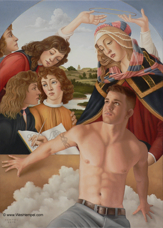 Wes Hempel, 2016; CATHOLIC TATTOO (study); oil on canvas, 28" x 20"