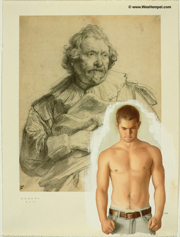 Wes Hempel, 2011; PAGE 209 (Van Dyck Series); oil and graphite on bookpage; 12.75" x 9.5"