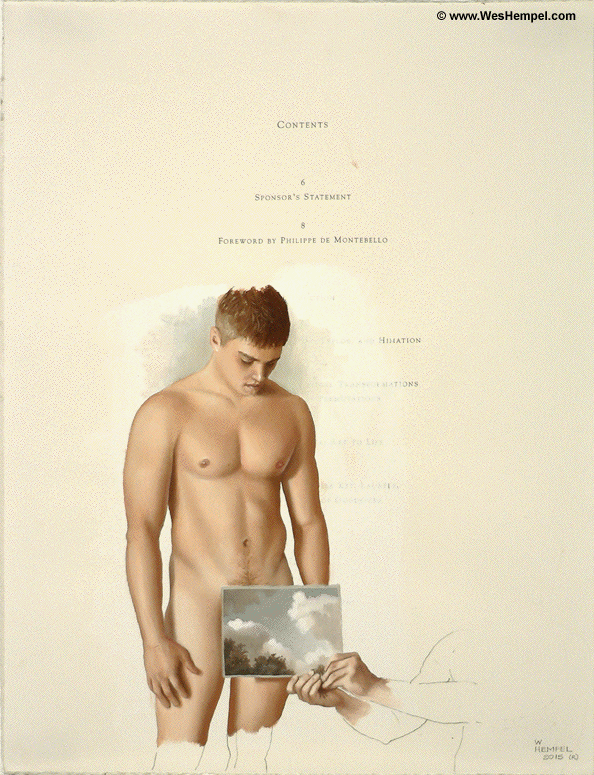 Wes Hempel, 2015; CONTENTS (Classical Series); oil and graphite on paper (bookpage); 11.75" x 9"