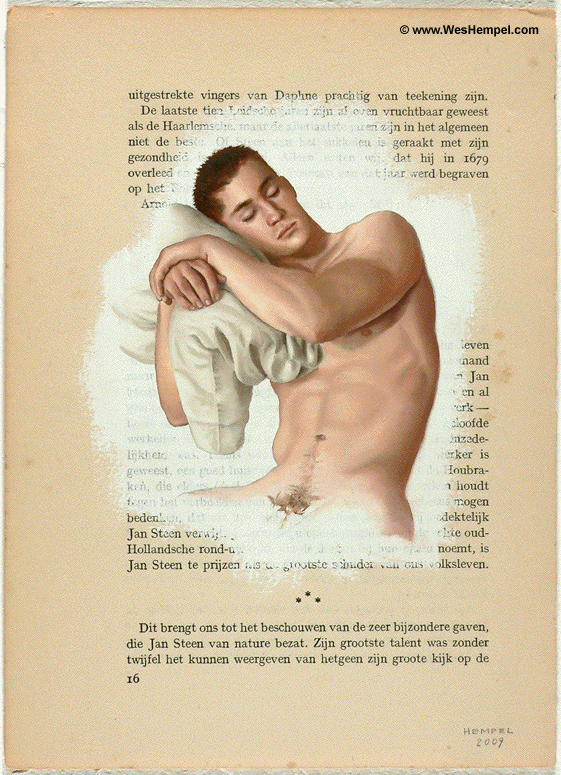 Wes Hempel, 2009; PAGE 16 (Leiden Series); oil and graphite on bookpage; 10" x 7.5"