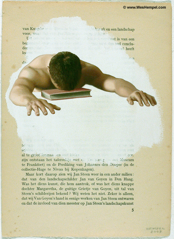 Wes Hempel, 2009; PAGE 5 (Leiden Series); oil and graphite on bookpage; 10" x 7.5"