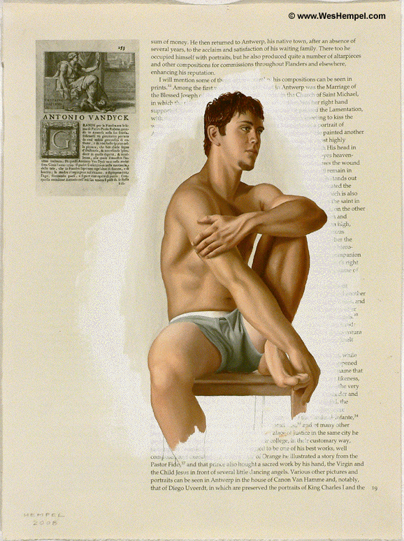 Wes Hempel, 2008; PAGE 19 (Van Dyck Series); oil and graphite on bookpage; 12.75" x 9.5"