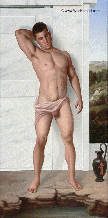 Wes Hempel, 2010; SLEEPING GUARD; oil on canvas, 24" x 12"